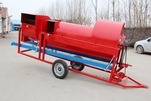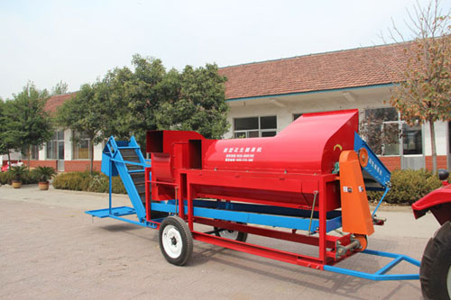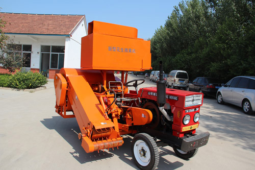 花生摘果機包括簡單的手搖花生摘果機、與發動機配套的花生摘果機、拖拉機配套的摘果機和電動機配套的摘果機。花生摘果機的結構比較簡單.其主要工作部件一般由彈齒滾筒、滾筒篩、固定彈齒、風扇等組成。無論配套什么動力,其工作原理都是相同的,均采用蓖梳式摘果原理。